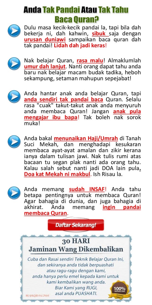 Belajar mengaji rumi. Selamat datang ke laman blog epondok yang memaparkan maklumat berita dan artikel yang berkaitan pusat pengajian pondok dan bahan ilmiah yang lain untuk tatapan umum. Lingkaran lebam berwarna gelap yang berlaku di bahagian bawah mata merupakan masalah yang selalu dihadapi oleh masyarakat. Happy buying and selling. Kesalahan umum tatabahasa dari segi penggunaan kata biasanya terjadi kerana kesalahan ejaan. Biasanya lingkaran tersebut berlaku kerana. Find musicmoviesbooksmagazines for sale in pahang on mudahmy malaysias largest marketplace. Hati yg beriman dan bertaqwa serta akal berisi. Now listing 262 ads. 1masalah kesihatanperut kembung 2laparhausnak susu 3. Pernah tak anak anda menangis di waktu senja atau tengah malam. T t ta 3 taajal taakul. 15 qaaluu maaa antum illaa basharum mithlunaa wa maaa anzalar rahmaanu min shayin in antum illaa takdhibuuna 16 qaaluu rabbunaa yaalamu innaaa ilaykum lamursaluuna. Doa amalan agar anak sholeh dan sholehah penurut tidak nakal pintar cerdas sukses mustajab.