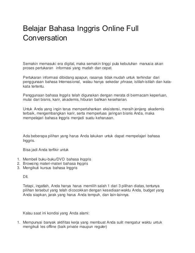 Belajar Bahasa Inggris Online Full Conversation